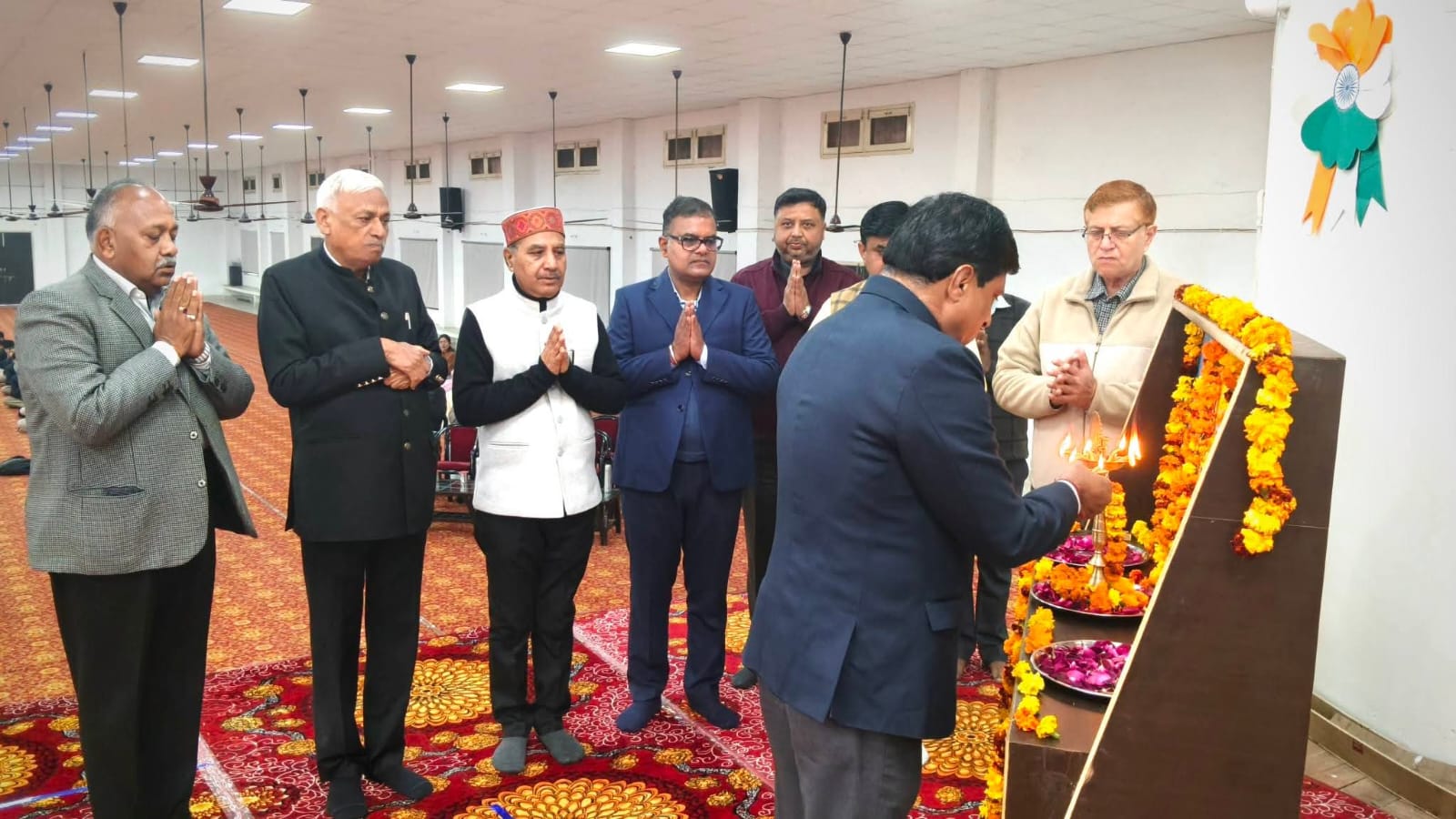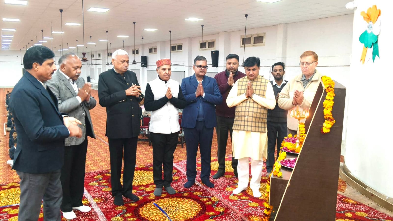 वंदना सत्र में मां सरस्वती के सम्मुख पुष्प अर्जित करते हुए अतिथि गण